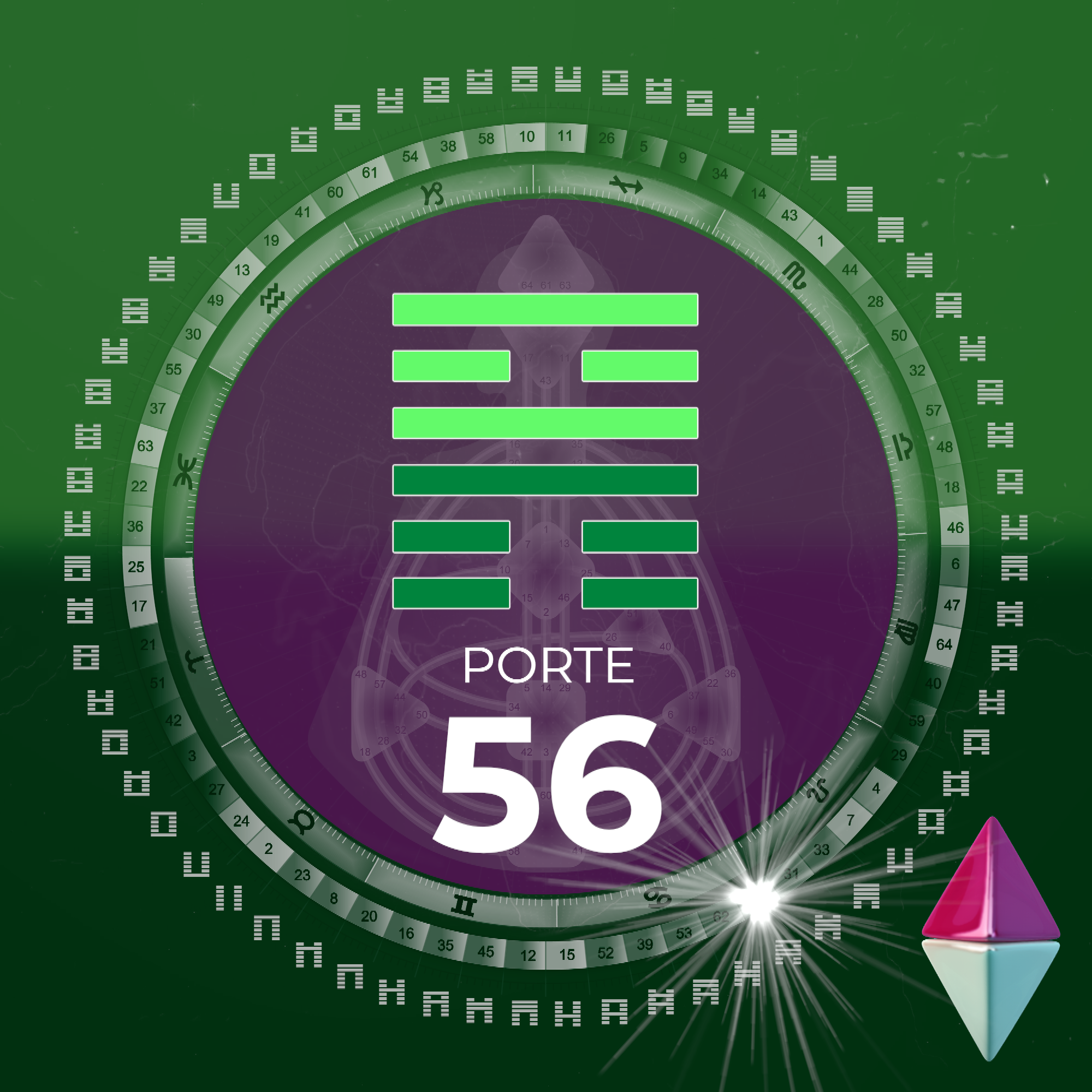 Le savoir porté par la porte 61 est spontané. Il n’est ni séquentiel ni issu du passé ou du futur. Il surgit de manière mystérieuse et inspire l’ensemble du circuit du savoir. Cette porte n’aspire pas à l’accumulation d’informations, mais au silence du mental, condition nécessaire à l’émergence d’une véritable inspiration.